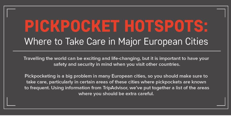 Travelling the world can be exciting and life-changing, but it is important to have your safety and security in mind when you visit other countries. Pickpocketing is a big problem in many European cities, so you should make sure to take care, particularly in certain areas of these cities where pickpockets are known to frequent.